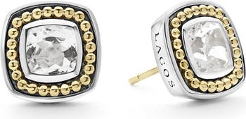 A sparkling white topaz is placed in a sterling silver setting and traced in 18-karat gold beading for a signature finish to these elegant stud earrings.