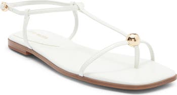 Goldtone hardware punctuates the toe of this contemporary sandal finished with an adjustable ankle-strap buckle closure.