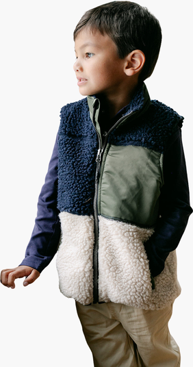 The River Outerwear Vest blends cozy shearling with a stylish woven fabric for the perfect fall layer. The soft shearling keeps your little one warm, while the woven panels add a modern, textured look. Lightweight yet warm, this versatile vest is perfect for layering over tees or sweaters, offering both comfort and style for cooler days.