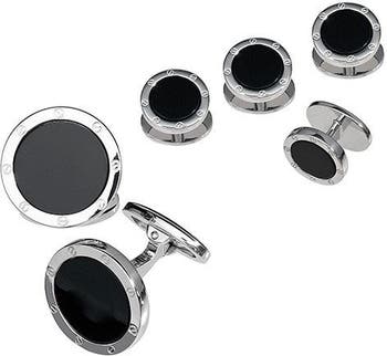 Rivet Etch Detail Sterling Silver Cufflinks and Stud Sets with Gemstone inlay. They are great for black tie and just as great for everyday suited-up styles.