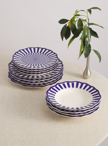 Prepare for your future estate on the Sardinian coast. The Riviera 12 Piece Set with Pasta Bowl is an essentials-only dinnerware set featuring our favorite pasta bowl that can also be used for soup. Dinner Plate: 10.5" x 10.5" x 0.75", Side Plate: 9" x 9" x 0.75", Pasta Bowl: 9.2" x 9.2" x 1.73".
