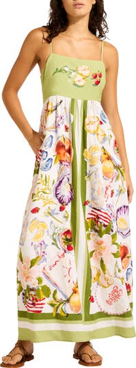 This cover-up maxi dress instantly slips you into 'vacation mode' with its throw-on-and-go ease and breathable linen blend in an artsy print.