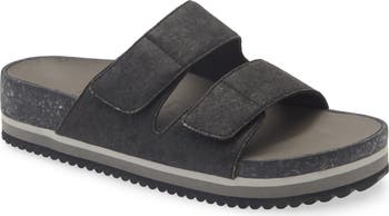 Recycled neoprene-backed cork straps and a sculpted, contrast-stripe midsole give this slide sandal a sport-influenced look, while EVA cushioning and arch support provide all-day comfort.