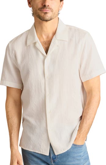 Breathable cotton enhances the go-to appeal of a camp shirt that's patterned in textured stripes and geometries and sized with plenty of room to move or relax. The straight hem stays casually untucked, while the notched collar brings traditional detailing to the everyday look.