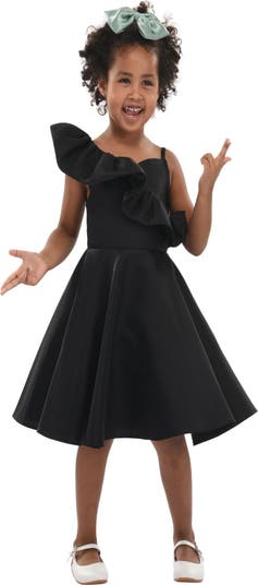 - 100% Polyester?Ruffled one-shoulder silhouette?Flared skirt with playful movement?Soft fabric with elegant drape?Statement design for festive occasions?Imported