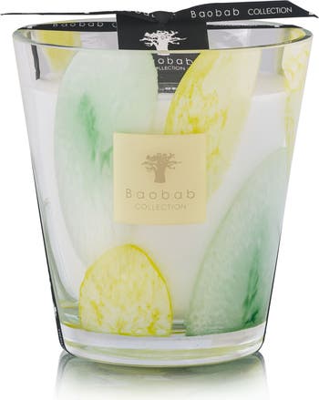 What it is: A candle housed in a vessel crafted from hand-blown transparent glass enhanced by oval shapes in tangy colors. The greens and yellows that randomly dot the glass can change in intensity according to the breath of the glassmaker.
