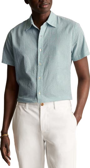 Perfectly rumpled cotton seersucker patterned in pale stripes makes a warm-weather favorite of a shirt that breathes easy in the heat and works whether you wear it tucked or untucked. The pointed collar and minimal detailing keep you looking smart even when you don't have to.