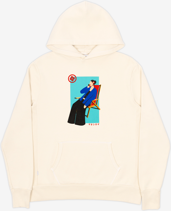 Our classic heavyweight hoodie—this french terry sweatshirt is wearable year-round and garment dyed for a relaxed, vintage feel. A superb layering hoodie. Riviera Woman Tee — Featuring a hand-illustrated AKASHI-KAMA design, an elegant woman wearing our Noragi while relaxing on the Riviera. Paying homage to bold 1980s style graphics and color palettes. Garment dyed, heavyweight cotton. Knit, cut, and sewn in Los Angeles and printed in Oakland, CA.