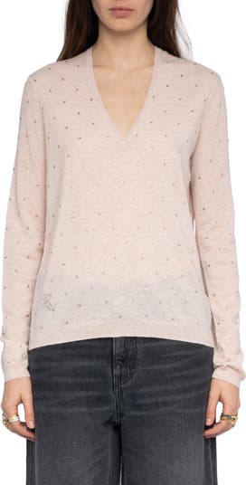 Rivy Rhinestone Emellished Cashmere V-Neck Sweater
