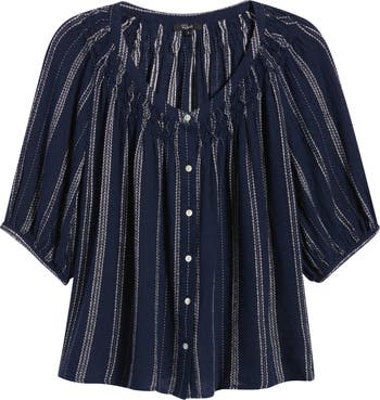 A swingy top serves summery goodness with a linen-forward fabrication and sweetly stitched stripes.