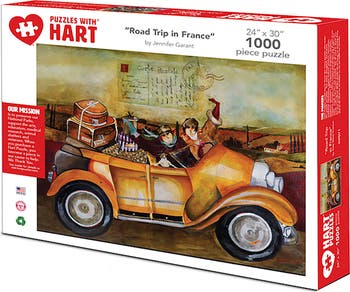 Road trip in France? Oui, oui! This will be one trip you will not forget as France has many magical regions. Visit Bordeaux and Burgundy for your favorite winery or for that matter one you did not know even existed. The French Alps almost need no introduction, but if you are driving down to the south-east of France then Montgenevre must be on your itinerary. Alsace-Lorraine on the border with Germany has a completely different feel to many other parts of France. Fontainebleau Forest. Versailles. Truffle hunting in the Dordogne. Then off to Nice and the beach. Enjoy your trip in this 24" x 30" 1000 pc puzzle. By artist Jennifer Garant. We pride ourselves on our high quality puzzles containing the finest art, photography and graphics. Hart puzzles also has a mission to help better our communities. When you purchase a Hart Puzzle, you become a "piece" in our cause to help. With every puzzle we sell, Hart Puzzles automatically donates to a cause such as our National Parks, animal shelters and veterans.