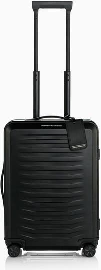A cabin trolley made of high-quality anodised aluminium, embodying Porsche DNA in every detail with its innovative construction.? ? The Roadster Aluminium Trolley S is ideal for business and leisure trips and offers the following features:? -Infinitely adjustable multi-stop handle mechanism? -Ball-bearing wheels in Carrera Classic design.? -TSA locks.? -Tonal iconic hexagon print and thoughtful interior storage. ? -Exclusive sticker set for the Porsche Mission Cars.? The design on the front and back of the trolley is inspired by the aerodynamic shape of the 911, which develops a unique patina with each travel adventure. Suitable as cabin baggage, please check the requirements of the respective airline. Made in Italy.