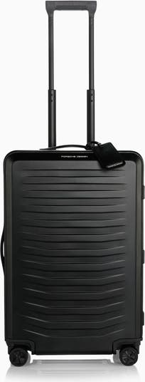 A trolley made of high-quality anodised aluminium, embodying Porsche DNA in every detail with its innovative construction.? The Roadster Aluminium Trolley M is ideal for business and leisure trips and offers the following features:? -Infinitely adjustable multi-stop handle mechanism? -Ball-bearing wheels in Carrera Classic design.? -TSA locks.? -Tonal iconic hexagon print and thoughtful interior storage. ? -Exclusive sticker set for the Porsche Mission Cars.? The design on the front and back of the trolley is inspired by the aerodynamic shape of the 911, which develops a unique patina with each travel adventure. Made in Italy.