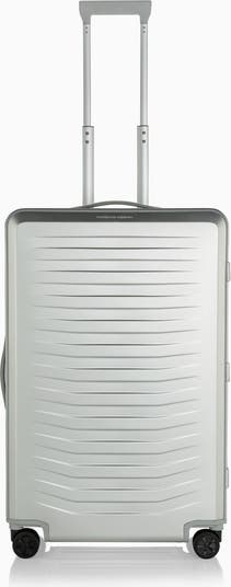A trolley made of high-quality anodised aluminium, embodying Porsche DNA in every detail with its innovative construction.? The Roadster Aluminium Trolley L is ideal for business and leisure trips and offers the following features:? -Infinitely adjustable multi-stop handle mechanism? -Ball-bearing wheels in Carrera Classic design.? -TSA locks.? -Tonal iconic hexagon print and thoughtful interior storage. ? -Exclusive sticker set for the Porsche Mission Cars.? The design on the front and back of the trolley is inspired by the aerodynamic shape of the 911, which develops a unique patina with each travel adventure. Made in Italy.