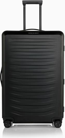 A trolley made of high-quality anodised aluminium, embodying Porsche DNA in every detail with its innovative construction.? The Roadster Aluminium Trolley L is ideal for business and leisure trips and offers the following features:? -Infinitely adjustable multi-stop handle mechanism? -Ball-bearing wheels in Carrera Classic design.? -TSA locks.? -Tonal iconic hexagon print and thoughtful interior storage. ? -Exclusive sticker set for the Porsche Mission Cars.? The design on the front and back of the trolley is inspired by the aerodynamic shape of the 911, which develops a unique patina with each travel adventure. Made in Italy.
