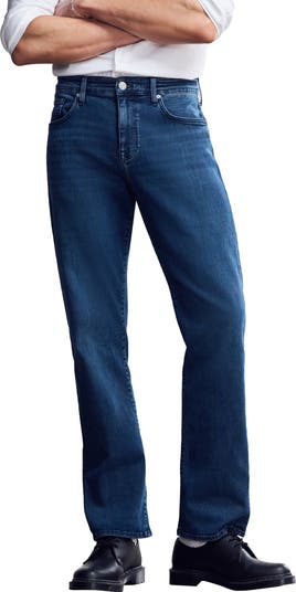 Relaxed and roomy from hip to hem, these straight-leg jeans bring an easy drape with a confident, clean line. Durable stretch denim and a dark-blue wash make them a wear-anywhere staple that can handle busy days and sharper nights.