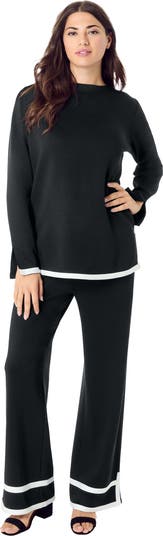 Coordinate and look great from head to toe with this lounge set. The color-blocked trim offers eye-catching contrast and understated style to its crewneck pullover and wide-leg pull-on pants. Side pockets.