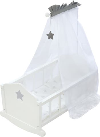 - Includes a pillow, a blanket and a canopy with a hanging star. The fabric that comes with the cradle is printed with star motif.