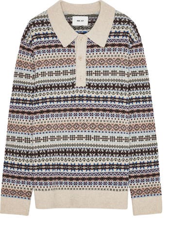 Knit from soft, warm wool-blend yarns in a multicolor Fair Isle pattern, this sweater brings the versatile styling of your favorite polo to your cold-weather layered look.