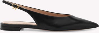 Crafted from mirror-effect leather, Robbie Sling 05 is a flat pointed-toe slingback with a 10mm block heel. The back strap is enriched with the iconic Ribbon buckle, signature of the Maison. Handmade in Italy.