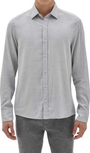 Slightly rumpled and lightly faded, this shirt tailored from cotton-blend twill sports a touch of silk and a fit that always looks great untucked.