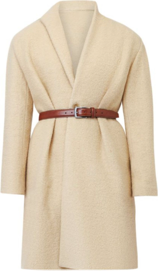 - Luxurious brushed wool coat with shawl collar and hand-knotted belt