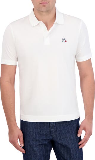 This staple cotton-jersey polo is finished with a small patch of a skull and rose for a bit of edgy playfulness.