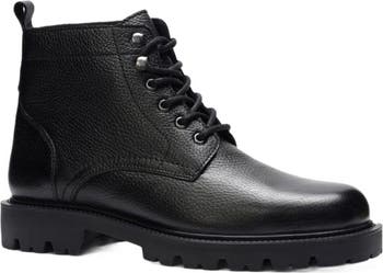 Robert's Antique hardware and a burnished leather upper introduce contemporary touches to this cushioned military boot, supported by a sturdy rubber lug sole.