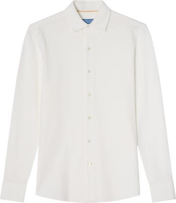 Cut from soft cotton piqué, the Foster offers a refined alternative to a traditional button-down. The fabric has subtle texture and breathability, making it comfortable across seasons. Finished with mother-of-pearl buttons, woven cotton twill accents at the collar and cuffs, and signature Talbott gold details, it balances polish with ease. Designed to wear cleanly on its own or layered under a jacket.