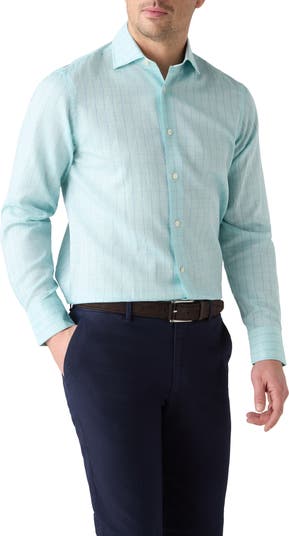 Reynolds Blue Windowpane Cotton Linen Blend Shirt in Contemporary fit