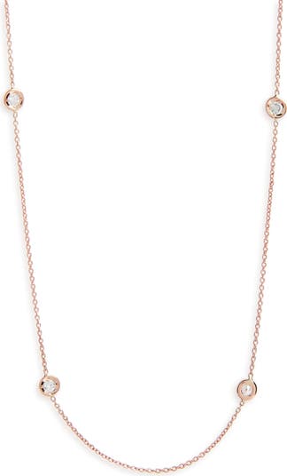 A timeless piece that fits beautifully into your modern style, this delicate chain of 18-karat rose gold sparkles with five brilliant-cut diamonds.
