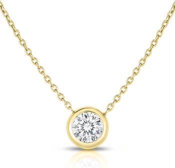 A bezel-set diamond makes a decidedly elegant station on a timeless 18-karat-gold necklace.