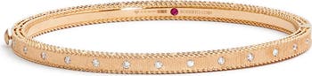 Inset diamonds sparkle next to fairy-tale-inspired braided edges of this dainty bangle created in satin-finish 18-karat gold.