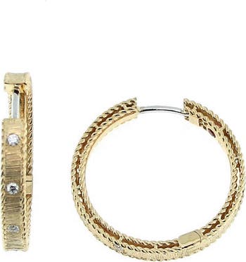Roberto Coin Princess Diamond Hoop Earrings, Main, color, D0.13 Ghsi 18Kyg