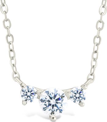 A trio of cubic zirconia stones center an elegant chain necklace that brings instant sparkle to your look.