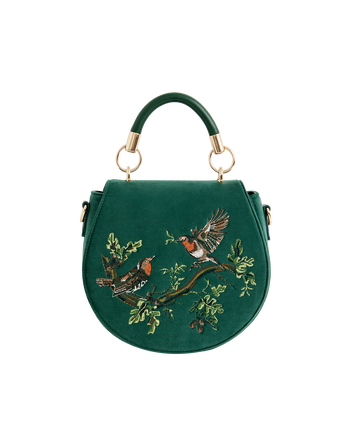 Robin Love Embroidered Saddle Bag Fern Green Velvet