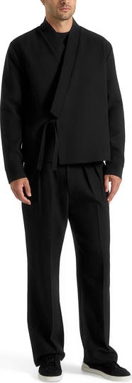 Designed in textured fabric, this piece enhances visual interest while keeping the silhouette refined. The kimono-inspired fastening creates a minimal, wrap-effect finish, balanced by an open v-neck collar for a relaxed, modern touch. Cut in a regular fit, it delivers everyday comfort and easy layering, blending understated design with versatile wearability.