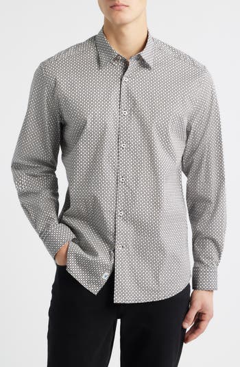 Robo Modern Fit Dot Print Stretch Cotton Button-Up Shirt