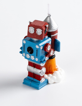 Pack of 1 candle and 1 flag with character robot. Perfect size for cakes. The exclusive design, quality hand-painted, clean-burning.