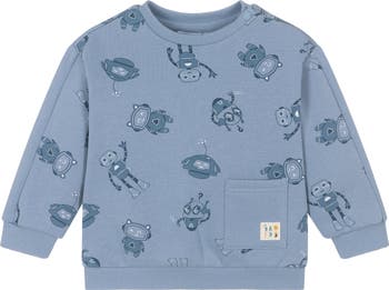 Let your little one’s style shine with the Robot Print Sweatshirt — fun meets comfort in a playful garment that’s made for everyday adventures. This sweatshirt features a cheerful robot motif across rich fabric, layering personality over softness. Designed with cozy ribbed trims at the cuffs, hem, and round neckline, it offers a snug fit that keeps warmth in without restricting movement. One of the highlights: popper fastenings on the shoulder, making dressing easier, especially with wriggly little arms.
