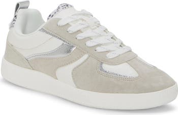 Animal-patterned faux fur and glitter-encrusted overlays further the mixed-media aesthetic of a low-profile sneaker grounded by a sporty cupsole.