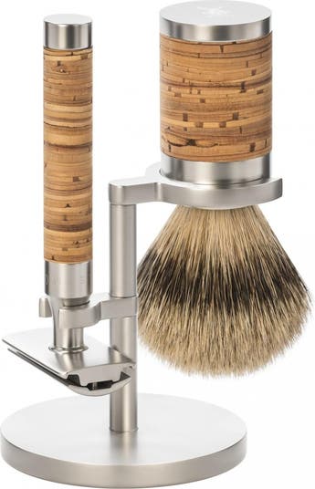 MÜHLE Rocca Birch Bark & Stainless Steel 3-Piece Silvertip Badger & Safety Razor Shaving Set, Main, color, Birch Bark