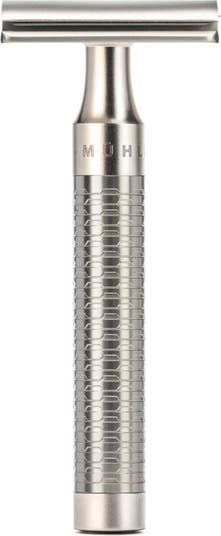 Beautifully simple, yet particularly masculine: This is the new ROCCA range of products. A little more modern, and more distinctive than much of what is known from MÜHLE, they are made from the finest and most durable stainless steel. But it has been worth the effort: These products are particularly durable and robust. The satin or slightly matte finish not only feels good in your hand, but is also pleasing to the eye and creates an elegant effect. Even with all of these new details, ROCCA's heritage is still very evident. The design of this range is a further development of classic MÜHLE models; the name ROCCA (from the Italian for castle or fort) refers to the very best materials – and also to the fact that a MÜHLE product will last a lifetime and beyond. ROCCA razor No frills, but with fine extras: The ROCCA razor could not be clearer or more masculine. Its uninterrupted lines from attachment to base make it both beautiful and practical: Thanks to its ergonomic shape and the surface structure of the handle, it feels good in your hand. As connoisseurs say: It has grip. It turns an everyday ritual into a daily design experience. We recommend our rust-proof MÜHLE razor blades which are the perfect match for our safety razors. How to use Shaving with a safety razor requires a little practice. The skin also needs some time to grow accustomed to the shave. Getting started will be easier if you follow these instructions: Moisten the beard area, preferably with warm water, and lather it thoroughly with a brush. The longer you lather the beard, the more easily and gently the hairs can be cut. If possible, use a highly effective moisturizing shaving cream or soap as this will allow the blade to slide over the skin more easily. Make sure that the shaving head and handle are firmly attached to each other, but only tighten the screw to the extent that it can be unscrewed without too much effort. This ensures that the blade rests at the correct angle. Now begin with the shave. Hold the safety razor at an obtuse angle (approx. 30°) to the skin. Start with the cheeks and allow the razor to slide over the skin, applying gentle pressure. Always shave in the direction of the beard growth (with the grain). When shaving the neck, stretch the skin tight with your free hand. Do not be discouraged by small cuts or grazes. Once you have familiarized yourself with the razor, they will rarely occur.