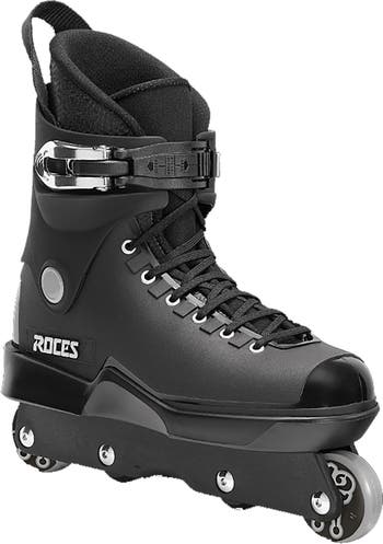 Get a great entry level aggressive skate with the Roces M12 UFS. This skate is built with the versatile UFS frame with a grind plate and aggro-grab strap. The shell of this skate is set up with a lace and locking cuff buckle closure that provides a secure and comfortable fit and easy adjustments. This skate features 58mm wheels with central grinding wheels for when the mood strikes to grind rails.