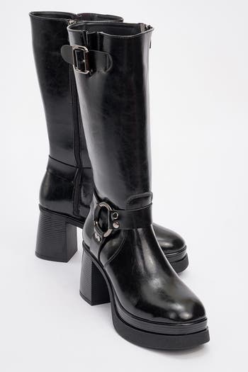 An assertive platform boot that fuses bold hardware with contemporary sophistication