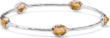 Faceted citrine triplets give a glint to this sterling silver station bangle.
