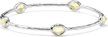 Faceted citrine triplets give a glint to this sterling silver station bangle.