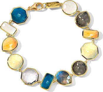 A myriad of bezel-set faceted stones, doublets and triplets lend dreamy color and iridescent glow to this timeless bracelet framed in polished 18-karat gold.
