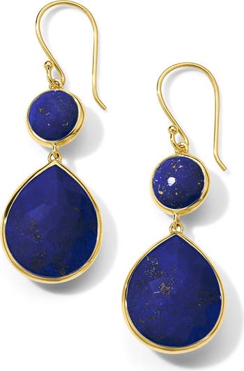 Faceted lapis lazuli give a deep hue to these drop earrings crafted from 18-karat gold.