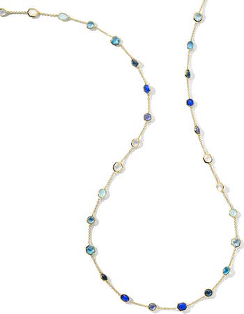 An electric assortment of blue triplets brings a wave of oceanic color to this 18-karat-gold necklace.